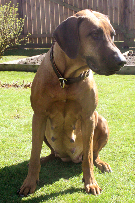 ---------------------------------------------------------------------------------- Torsdag 29. marts 2012 Scanning i morgen - resultatet kommer her i morgen aften. ---------------------------------------------------------------------------------- Mandag 26. marts 2012 Så mener vi, at de første tegn er der ... der er i hvert Det er ved at være tid til scanning - sidst på ugen ved ---------------------------------------------------------------------------------- Søndag 25. marts 2012 Zibu og jeg var i Moers (vest for Dortmund) for at deltage i Landessieger Der var 76 tilmeldte Ridgebacks. Ud over Zibu og Ulanyo var der en af Ulanyo's Endnu engang blev jeg helt forelsket, når han kiggede på mig Zibu blev Bedste Veteran og Bedste Tæve (BIM) og Ulanyo