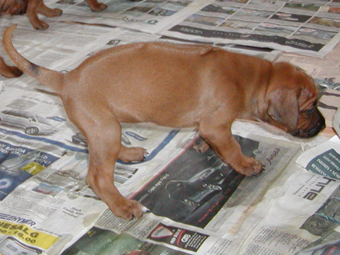 | 29. dag Traet lille vaps efter leg med aviserne! ![]() |