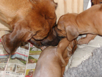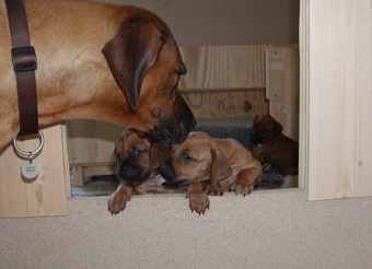 Femte uge: Nikolai er meget glad for de smaa hvalpe. Selv midt i en god leg eller en god film, saa skal han lige hen og checke, at alt gaar godt. Han har vaeret med til at navngive hvalpene, og 4 af dem har (selvfoelgelig) faaet fine navne fra Disney's ''Loevernes Konge'': Mufasa (Simba's far), Rafiki (mandrillen, Mufasa's kloge foelgesvend), Sarafina (Nala's mor) og Kiara (Simba og Nala's datter). BETYDNING: |