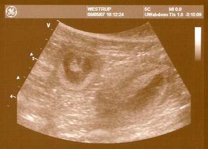 | Ultralydsbillede 4 uger henne! / Ultra sound photo 4 weeks pregnant! | ||