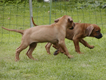 Ottende uge: Nu er de smaa snart 8 uger gamle. Vil de kunne klare at sige farvel til os. De er jo saa smaa. I loebet af de 8 uger er opdraettermor og -bror blevet MEGET knyttet til alle 7. Vi toer ikke taenke paa den dag de begynder at forlade os. Men det skal jo ske. Paa den anden side, saa er der 7 dejlige familier, som venter med laengsel paa at faa en lille hvalp med hjem i bilen. En lille hvalp at fodre, opdrage, og elske. Jo ... de faar det godt alle sammen. Det er vi helt sikre paa. |