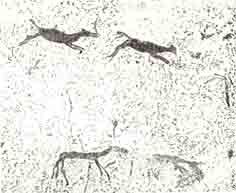 ![]() Hulemaleri fundet på sydsiden af Erongo-regionen Kilde: "Ridged Dogs in Africa" af Mylda L. Arsenis |