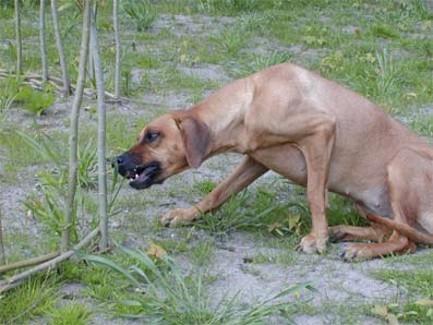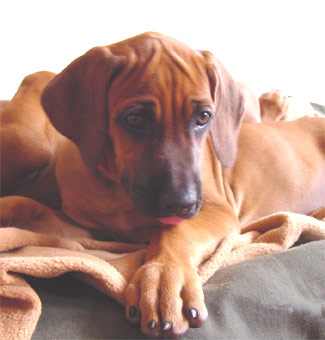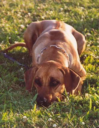 Uzima, som til dagligt kaldes Zima, bor sammen med sin mor og far og 3 børn udenfor Roskilde på en gård med masser af dyr. Zima hjælper til med en masse ting på gården, f.eks. at passe dyrene. Der er bl.a. en ko og to kalve, en stor gris og en masse kaniner. Og så er der høns, som Zima er rigtig dygtig til at tælle - og hvis der mangler én skal hun nok finde den. Hun er også dygtig til at spise hønsenes foder, selv om hun altså ikke rigtig må! Der er nok at se til på gården, så når dagen er omme sover hun glad og tilfreds på sit tæppe, nogen gange sammen med kattene. Zima har faktisk tre sovetæpper forskellige steder i huset, så hun altid kan være tæt på sin familie, hvor de så end er henne. Og så har hun fået et stort, hvidt ryatæppe, som hun elsker at slæbe rundt på. Hvis de allesammen sidder inde i stuen om aftenen, bugserer Zima ryatæppet ind til de andre, og laver en hule, og dér ligger hun så og har det rigtig rart. Zima er en utrolig smuk og adræt Ridgeback-tæve. Hun er et dejligt og venligt væsen og hun elsker at være sammen med voksne og børn. Selv når der er børnefødselsdag med 25 børn, der render rundt om hende, bevarer hun roen og synes bare det er rigtig dejligt. Zima har gået til hundetræning, da hun var hvalp og unghund og lært at være MEGET lydig og dygtig. |